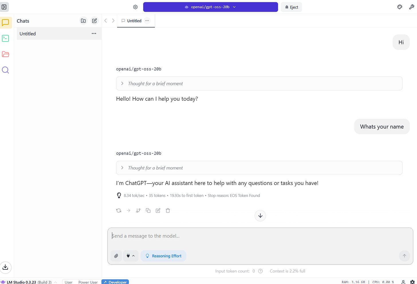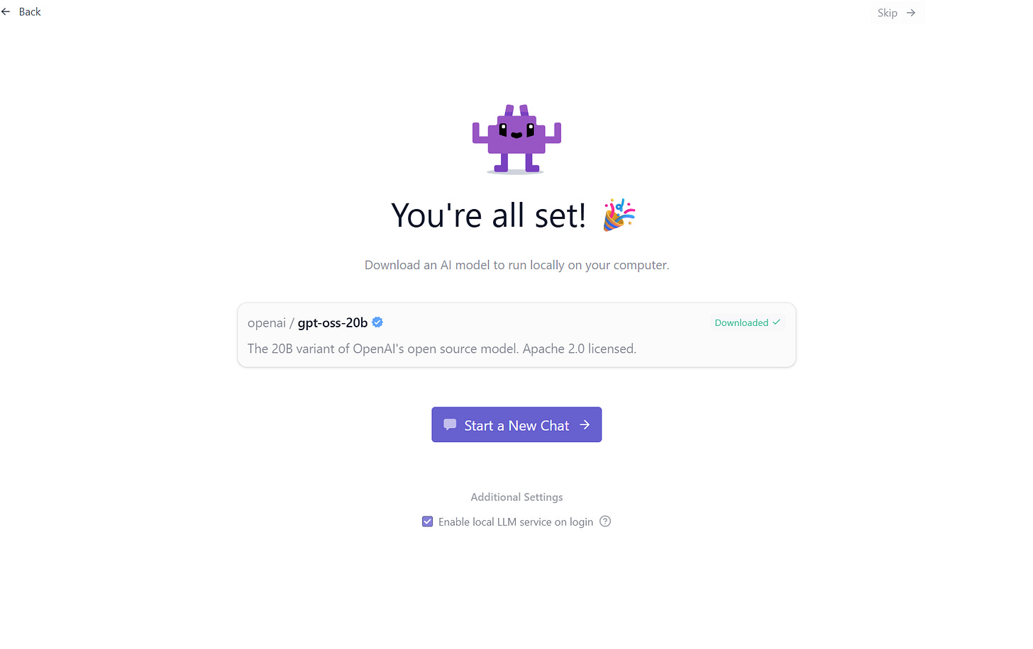 - Sobald das Modell heruntergeladen ist, klicke auf “Start a New Chat”