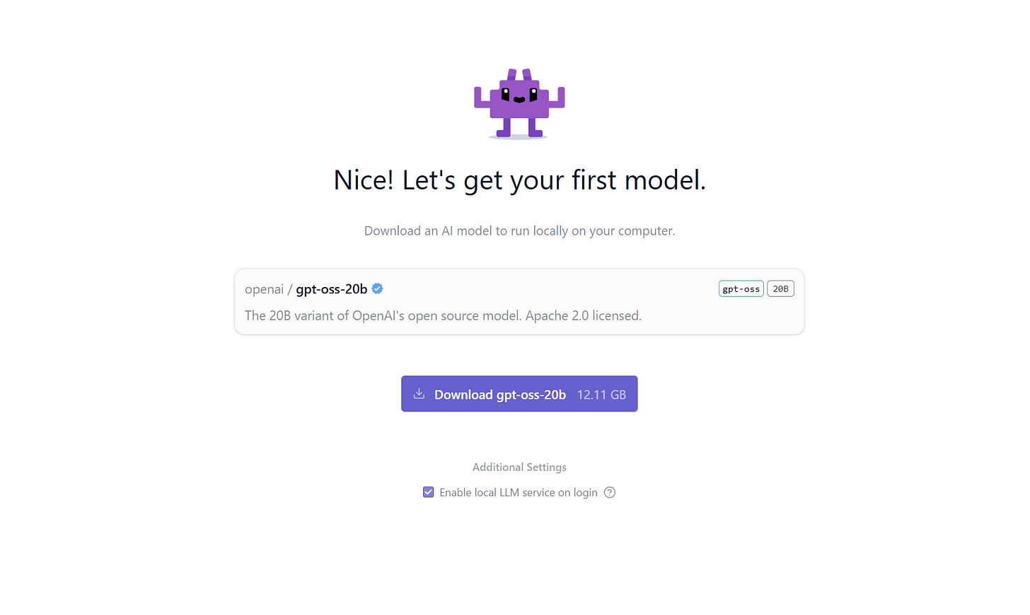 - Lade dein bevorzugtes Modell herunter (hier z.B. GPT-OSS 20B)