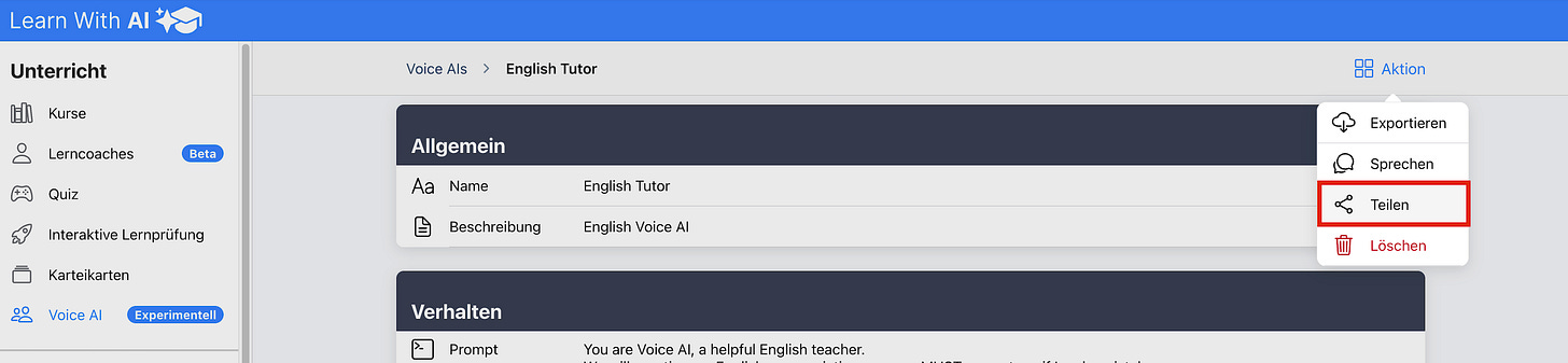 - Kopiere den Link und teile ihn mit deinen Lernenden oder füge Voice-AI in deinem Learn-With.AI Kurs hinzu – fertig! Dein persönlicher Voice-AI ist einsatzbereit.