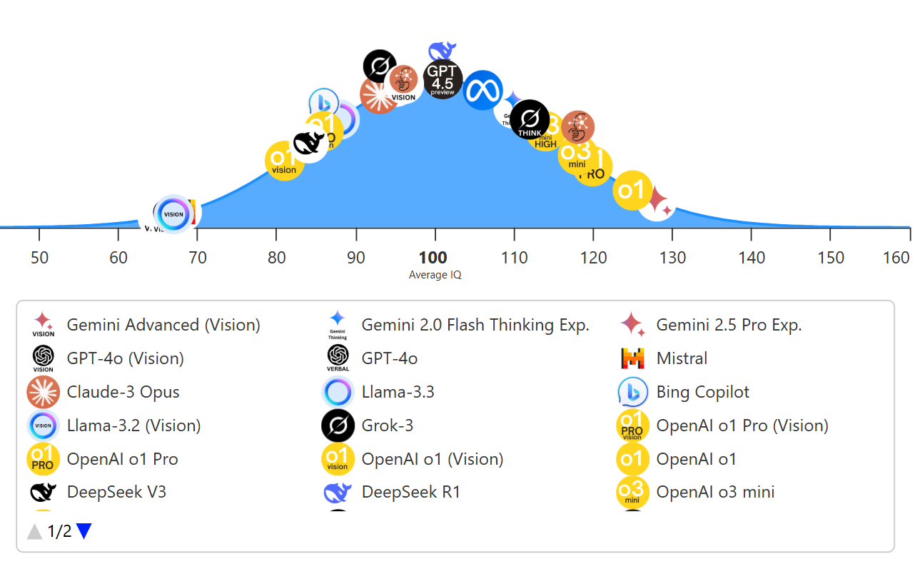 Die verglichenen IQ-Werte basieren auf dem Mensa Norway IQ Test, einem inoffiziellen Online-Test, der eine EinschÀtzung der allgemeinen kognitiven FÀhigkeiten ermöglicht und einen IQ-Wert zwischen 85 und 145 ausgibt, wobei 100 dem Bevölkerungsdurchschnitt entspricht. WÀhrend die Ergebnisse eine interessante Vergleichsmöglichkeit zwischen verschiedenen KI-Modellen bieten, sollten sie nicht als absolute oder wissenschaftlich validierte Messung interpretiert werden.